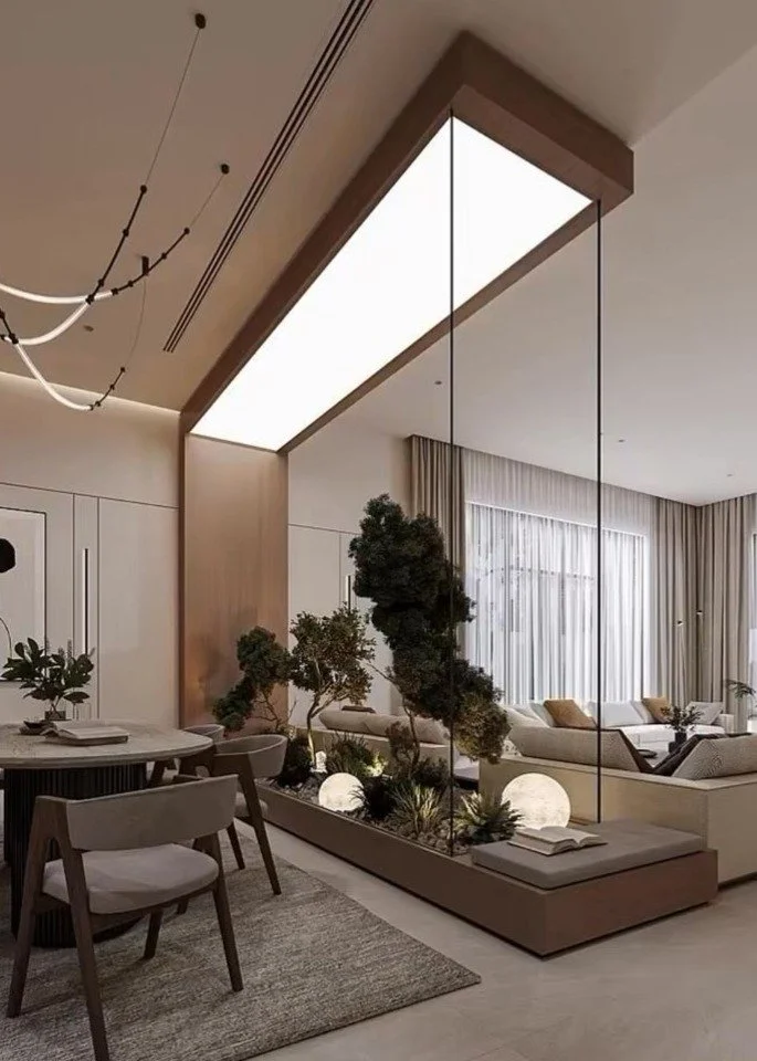 - Mise en Lumière : Spots LED encastrés orientables, rubans lumineux discrets, éclairage indirect pour créer une ambiance chaleureuse